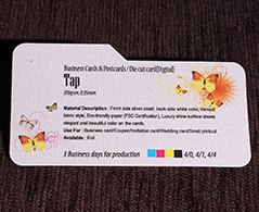Eco-friendly paper (FSC Certification), Front side silver pearl, back side white color, tranquil fabric style, Luxury shine surface shows elegant and beautiful color on the cards. |